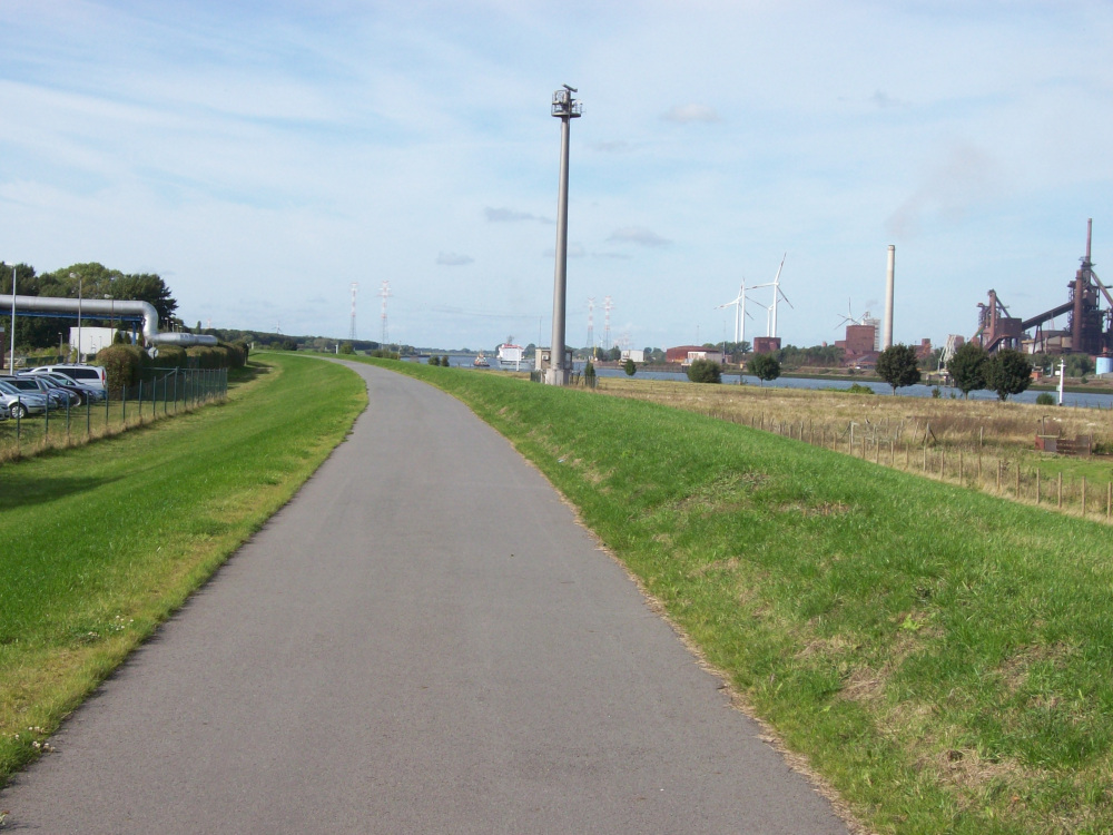 Ab Brake führt der Weg mit deutlichem Abstand zur Weser über straßenbegleitende Radwege. Die Strecke führt vorbei am Kraftwerk Unterweser und über den Wesertunnel hinweg.