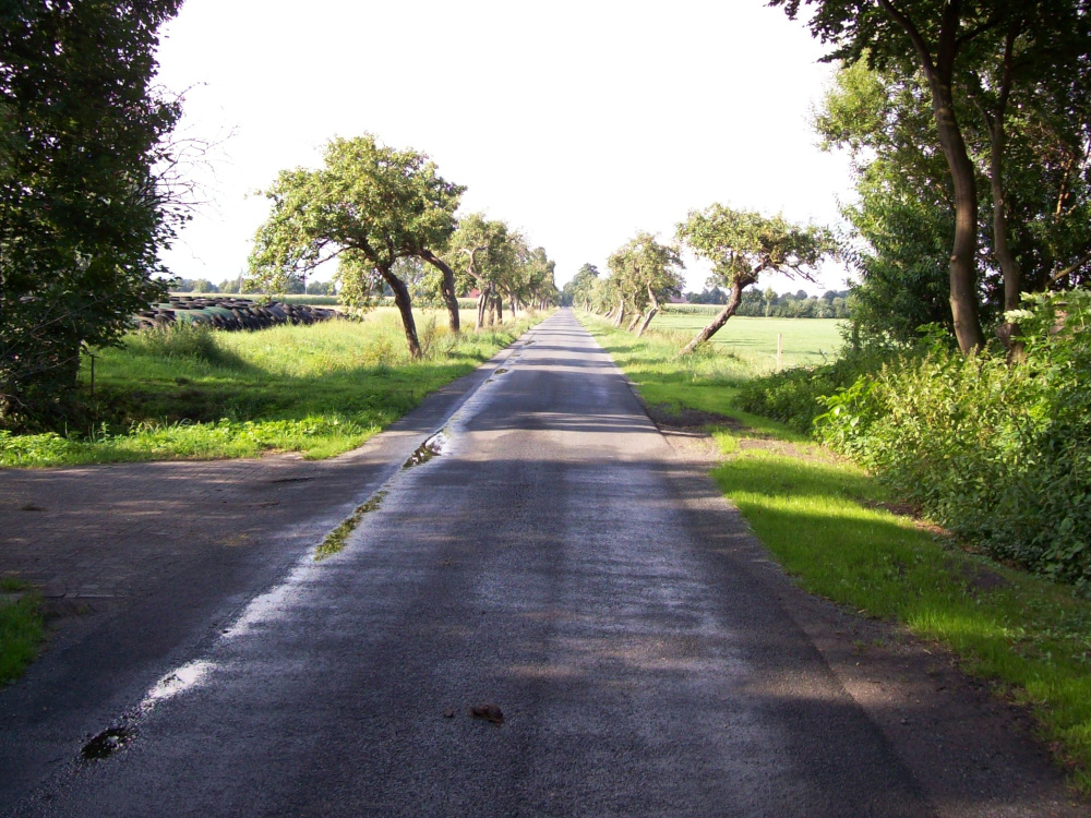 Hier folgten wir der Alternativroute , die an der Ostseite entlang führt und ab Marl bogen wir endgültig Richtung Osten ab und auf eine lange, gerade Nebenstraßen , auf der wir uns endlich über Rückenwind freuen konnten. Aufgrund der vorgezogenen Übernachtung in Visbek, hatten wir in Wagenfeld mehr als 90 Kilometer auf dem Tacho , die durch das regnerische Wetter und jede Menge Gegenwind endlos erschienen.