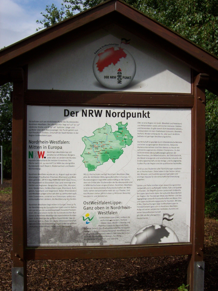 Von Wagenfeld aus ging es über Nebenstraßen zum nördlichsten Punkt Nordrhein-Westfalens. Nachdem es bisher vorwiegend geregnet hatte, kam genau im richtigen Moment die Sonne heraus, um die beim Rastplatz aufgestellten Sonnenuhren auszuprobieren.