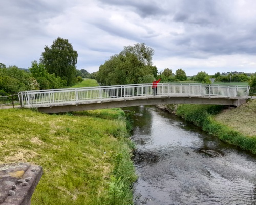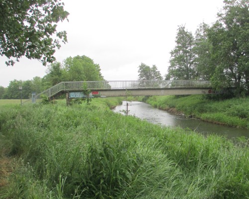 Einige hundert Meter weiter quert man die Leine dann problemlos und Treppen-frei über eine, auch für Autos befahrbare, Brücke.