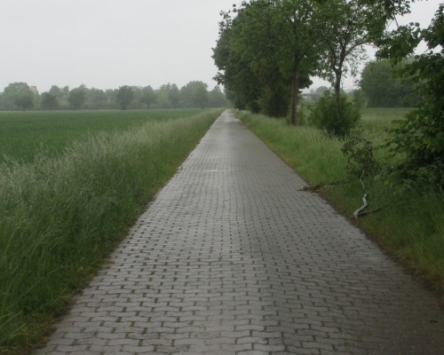 In Brüggen passiert man Schloss Brüggen , das aber nicht offentlich zugänglich ist. Zwischen Brüggen und Gronau geht es auf einem kleine Damm schnurgrade voran. Gronau erreicht man durch einen kleinen Park und kommt dann an einem recht schiefen Turm vorbei. Nachdem wir Gronau durchquert hatten, führte die Strecke die letzten Kilometer über Feldwege bis Elze.