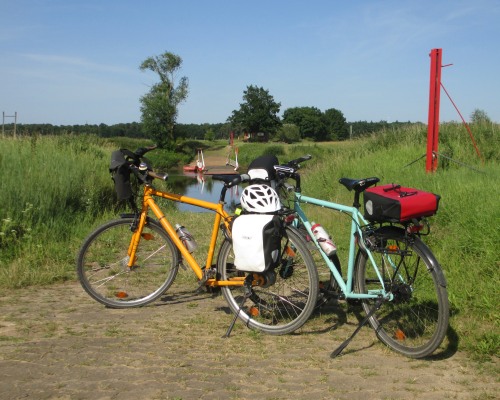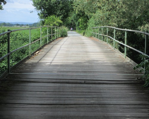 Vor Friedland kommt man über eine Brücke , die offenbar extra für Radfahrer angelegt wurde, weil die parallele verlaufende Autobrücke sehr schmal war. In Friedland wird aufgrund des Museums-Umbaus auch der Radweg umgebaut. Leider hatte man vergessen eine Umleitung für Radfahrer auszuschildern. Mithilfe des Navis ließ sich aber schnell eine Umleitung finden, so dass wir unseren Weg nach Göttingen fortsetzen konnten.