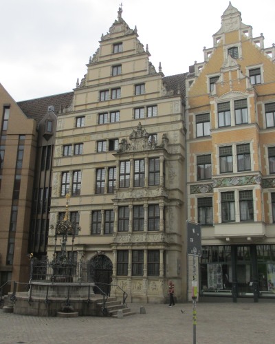 Am Landtag und der Markthalle vorbei fährt man zum Alten Rathaus . Hinter diesem quert man den Marktplatz mit der Marktkirche und kommt durch die nach dem Krieg wieder aufgebauten Altstadt zum Leibnizhaus . Weiter geht es zur Leinewelle einem vergleichsweise neuem Surfspot mitten in der Innenstadt.
