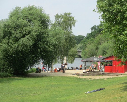 Weiter führt die Strecke übergangslos in die Leineauen und später durch die Ricklinger Teiche. Die Qualität der Wege wechselt zwischen breiten Kieswegen , gepflasterten Feldwegen und zeitweise schmalen, aber idyllischen Trails . Auf diese Weise nähert man sich unbemerkt Hannover. Erst kurz vor dem Maschsee führt die Strecke dann an der Leineinsel und ihrem sehenswerten Brückenwehr vorbei. Kurz danach erreichten wir das Südufer des Maschsees und damit das Ende unserer Tagesetappe.