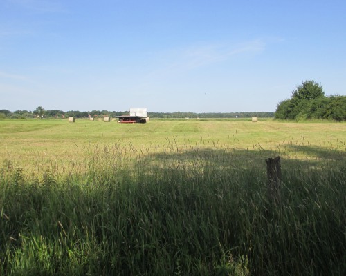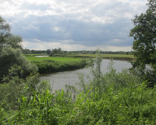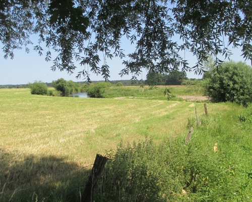 Ein Blick auf die Karte zeigt, dass sich die Mündung der Leine in die Aller etwas südlich der Fähre befindet. Wir hatten Glück und konnten über ein gerade abgeerntetes Feld nahe genug an die Mündung gelangen, um ein paar Fotos zu machen.