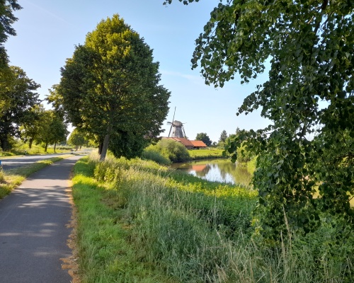 So kann man einen Blick auf Schloss Bothmer und die Bothmer Mühle werfen. In Grethem bogen wir nach rechts ab, um zunächst zur Allerfähre Eickeloh zu fahren. Diese Fähre wird von einem Verein betrieben und ist leider nur an wenigen Sonn- und Feiertagen in Betrieb.