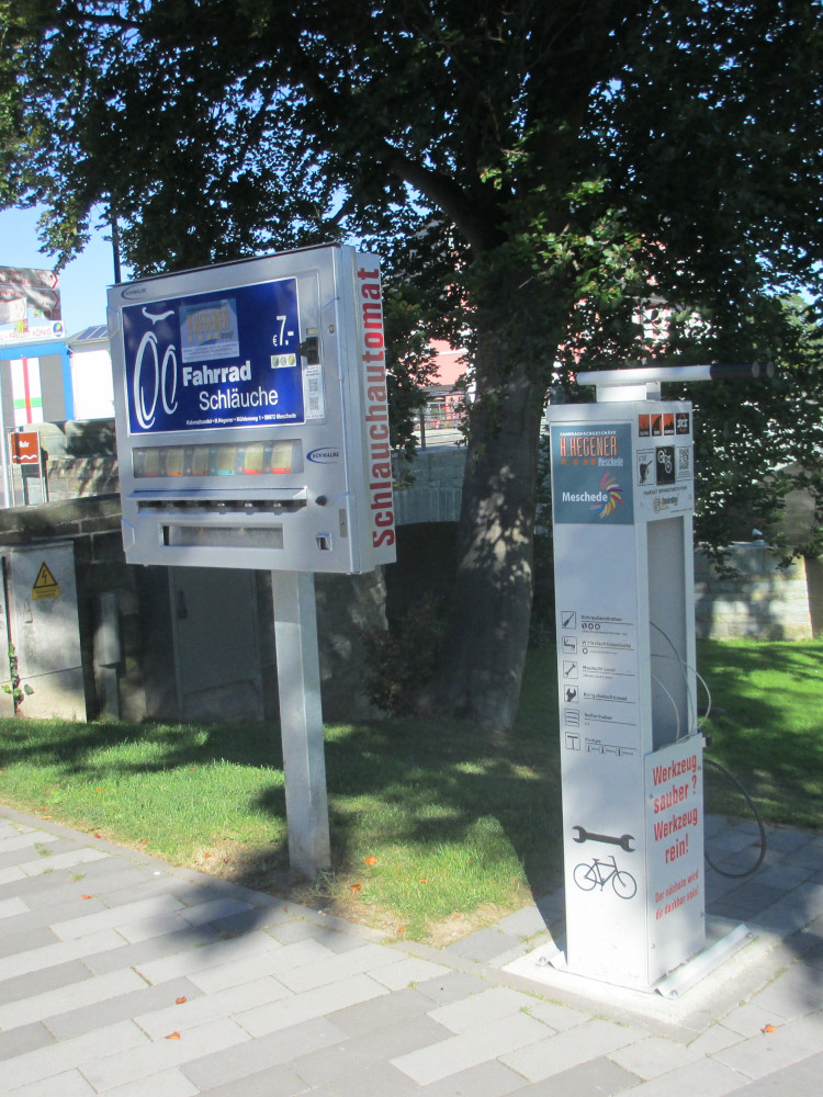 Unterwegs findet man manchmal auch direkt am Fernradweg öffentliche Servicestationen oder auch eine fest installierte Luftpumpe . An Sonn- und Feiertagen können unter Umständen sogenannte Schlauchomaten die letzte Rettung sein. Den jeweils nächsten Automaten findet man leicht über die Seiten der Reifenhersteller im Internet. Die Standorte von Fahrradwerkzeugstationen lassen sich dagegen auch über das Internet nur schwer finden.