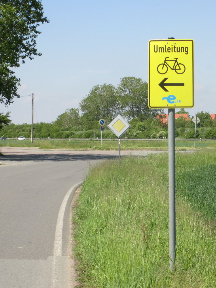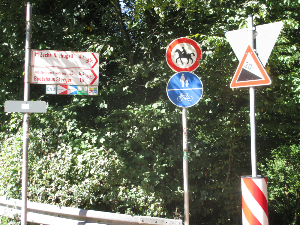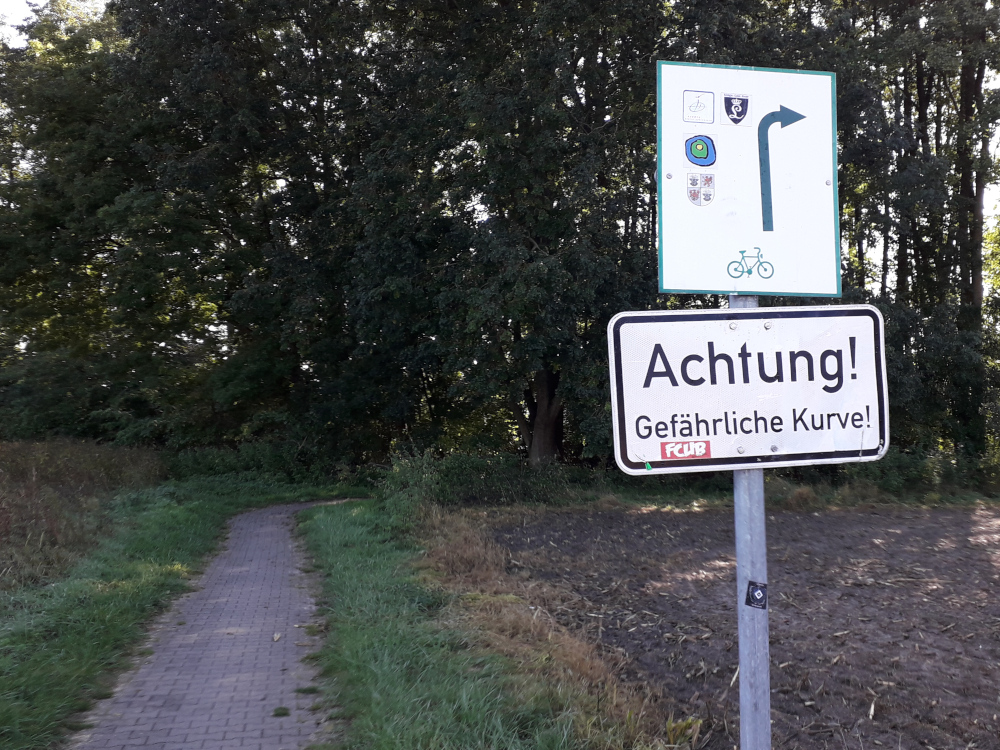 Auch auf Gefahren für Radfahrer wird ab und an extra hingewiesen. An manchen Stellen wird man allerdings vom Schilderwald schon fast erschlagen und es dauert einen Moment bis man das Schild mit den wichtigen Hinweisen gefunden hat.