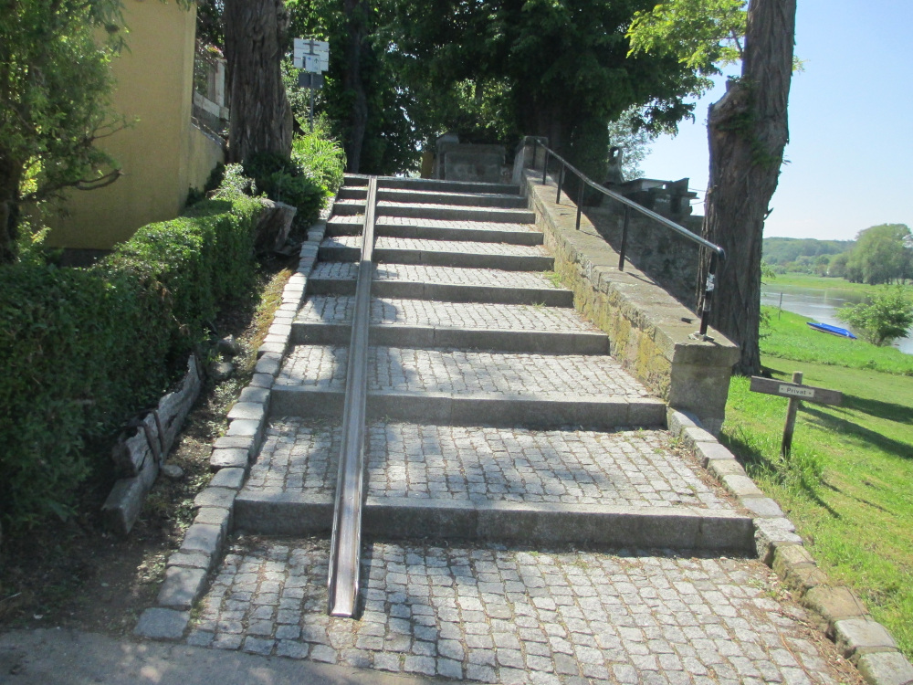 An der Moldau konnten wir diese Monstertreppe durch eine fast zufällig entdeckte Fähre im nächstgelegene Dorf umschiffen.