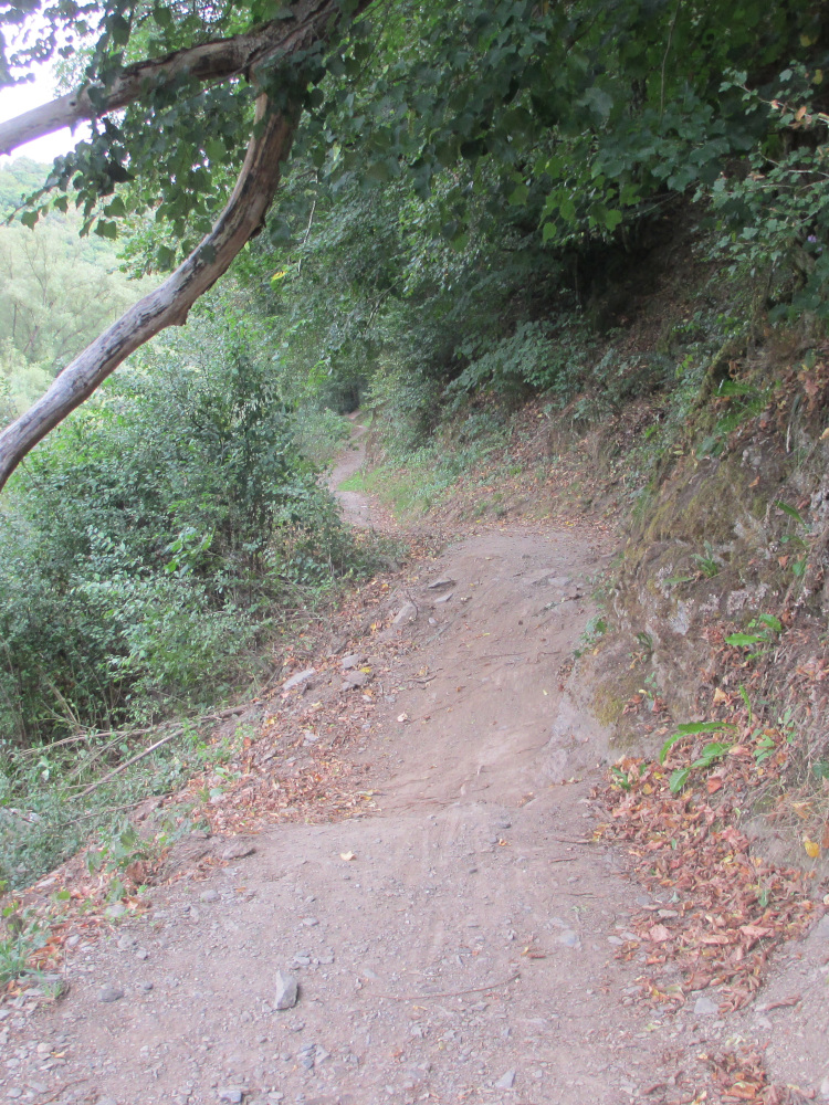 Auch im Nachhinein können die Auswirkungen des Wetters noch vorhanden sind. Am Lahntal-Radweg war an einem schmalen Uferpfad ein größerer Baum umgestürzt und hatte im Weg eine ordentliche Senke hinterlassen, die wir besser schiebend passiert haben.
