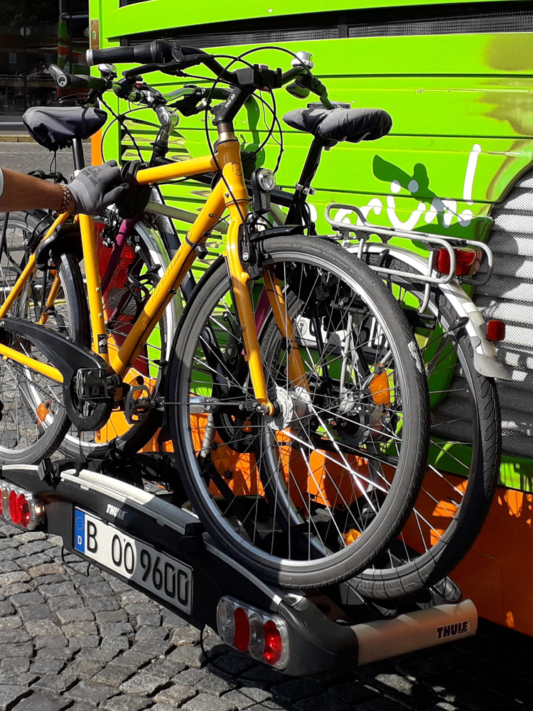 Fernbusse: Wir haben bisher zweimal Fernbusse zur Anreise genutzt. Für die Fahrradmitnahme ist eine Reservierung erforderlich. Damit wird sichergestellt, dass der eingesetzte Bus auch einen Fahrradträger am Heck montiert hat. Positiv ist uns aufgefallen, dass die Busfahrer informiert waren, dass Fahrräder mitgenommen werden sollten. Einmal fehlte jedoch offensichtlich die Erfahrung bei der Bedienung des Fahrradträgers. Dies Problem ließ sich aber zeitnah lösen. Im zweiten Fall lief alles absolut reibungslos.