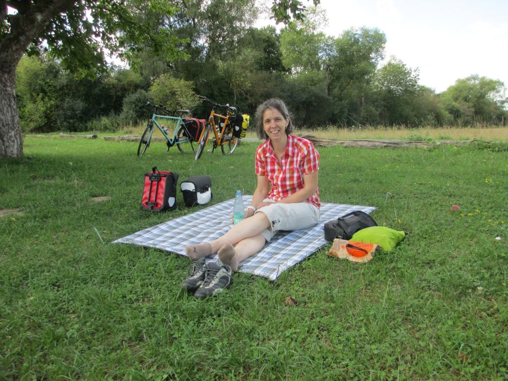Bei unseren Touren ist nicht die Länge der Strecke oder die überwundenen Höhenmeter, sondern vielmehr die Gesamtdauer auf dem Rad der limitierende Faktor einer Tagesetappe. Irgendwann ist die Haltemuskulatur des Rumpfes erschöpft und man kann sich nur noch mit Mühe auf dem Rad halten. Bei einer Rast im Sitzen oder Stehen entlastet man die Rumpfmuskulatur aber kaum. Deshalb haben wir seit einiger Zeit eine leichte wasserfeste Picknickdecke dabei. Sie macht uns einerseits von Rastplätzen unabhängig und bietet andererseits die Möglichkeit sich kurz hinzulegen. Powernapping ist angesagt!