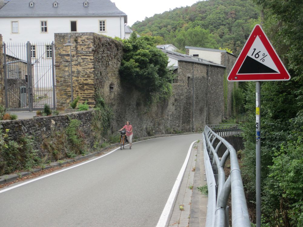 Kilometerlange Steigungen sind an Flussradwegen dagegen ungewöhnlich, man trifft in manchem tief eingeschnittenen Flusstal aber durchaus auf kurze und zum Teil erhebliche Steigungen . Hier kommen wir mit unseren 8-gang Rädern auch regelmäßig an unsere Grenzen. Solche Steigungen sind im Höhenprofil einer Tour meist deshalb nicht zu erkennen, weil sie vergleichs- und glücklicherweise kurz ausfallen.